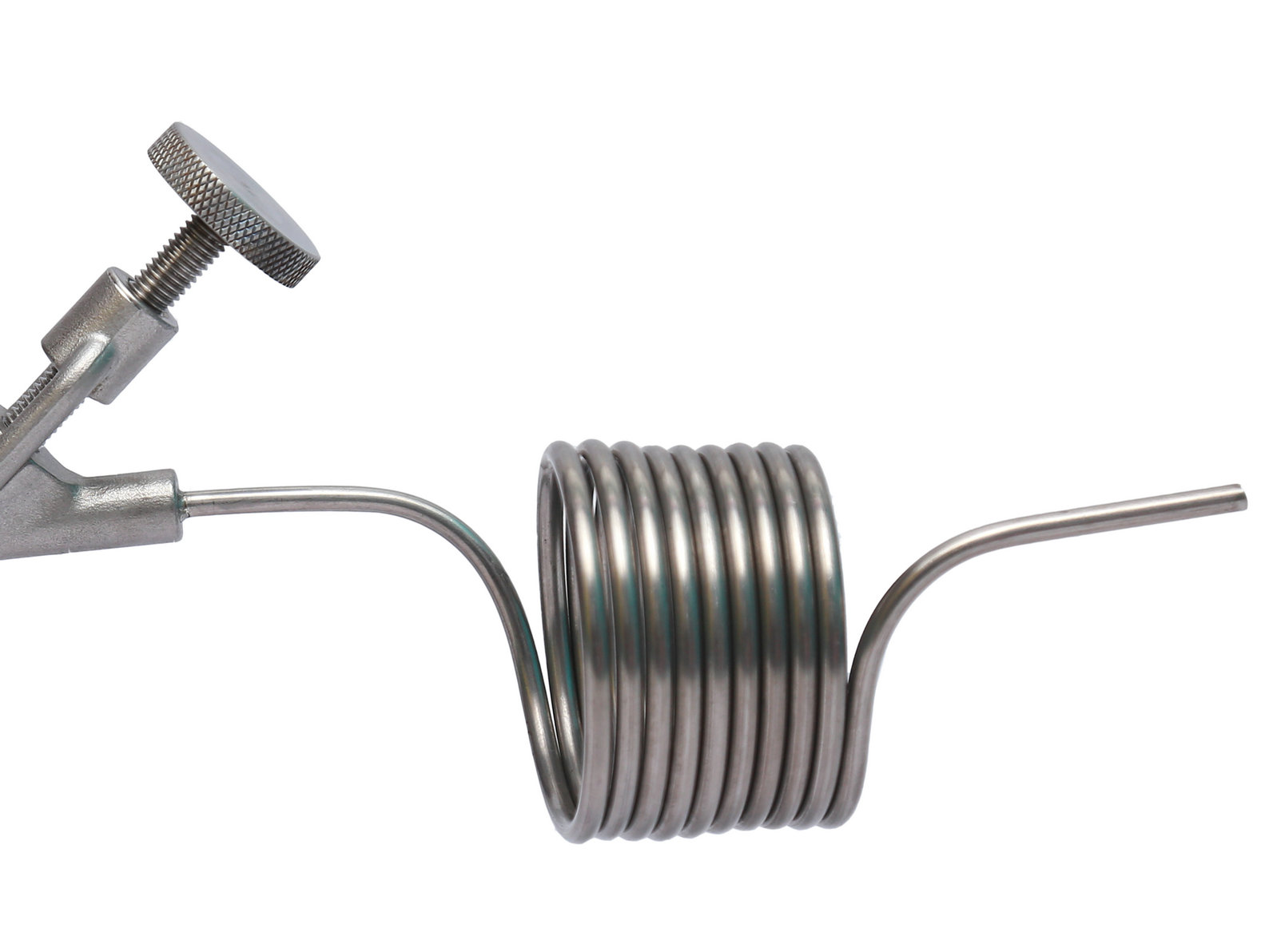 消沫器具備有特種功能,鏈接口掛在螺旋式取樣閥和旋塞式取樣閥出口上,(設計為掛式)。管內徑光潔度光滑,取樣閥打開流向到消沫器盤管上,經過盤管螺旋走向,減少啤酒氣體壓力,出酒很少有沫,保證取樣時的酒液口感度 同時也可以滿足于各種生產工藝需求,也可以用來打酒設備。該啤酒消沫器不銹鋼材質,衛生設計,滿足于啤酒業等各種工藝領域。