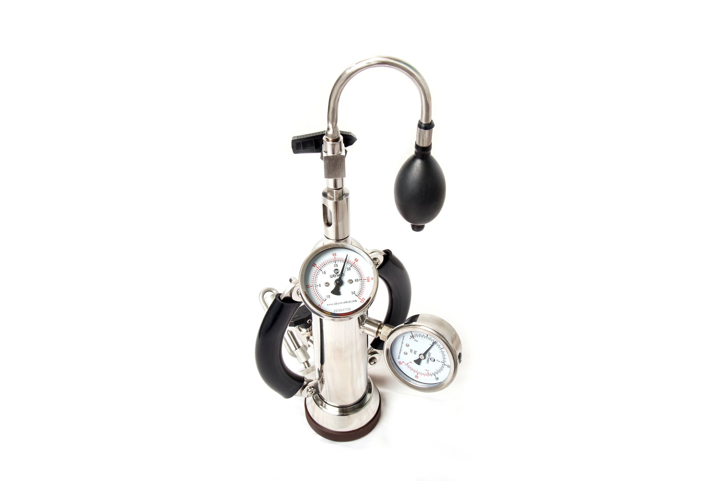 5.當壓力表穩定時,移去抽氣器燈泡(8),并部分打開頂部排氣閥(6),使儀表上的壓力下降約1磅/英寸。允許音量表充滿,直到啤酒溢出鵝頸管(7)。