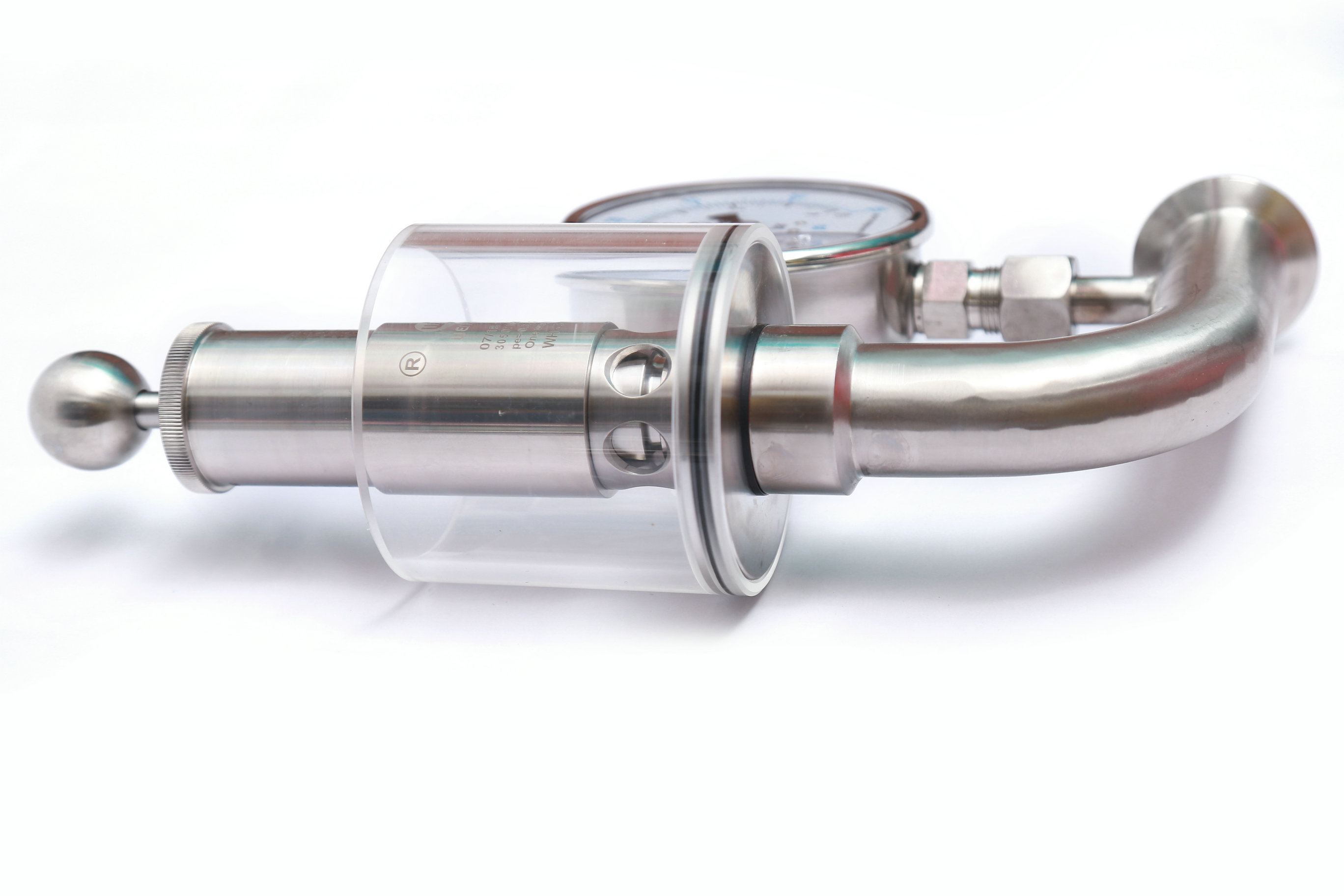 該閥門應用于壓力容器式管路系統上 調節單向排氣閥保護容器壓力過高防爆作用,當壓力高于設定壓力(標準1BAR)時可以排氣,反之關閉,調節桿標上壓力刻度,所需壓力按刻度上調整,該閥門使用方便,刻度準確,玻璃罩加水能看到發酵效果,減少染菌。同時也可以滿足于各種生產工藝需求,適用于各種食品加工,啤酒,飲料以及制藥等各種工業領域。