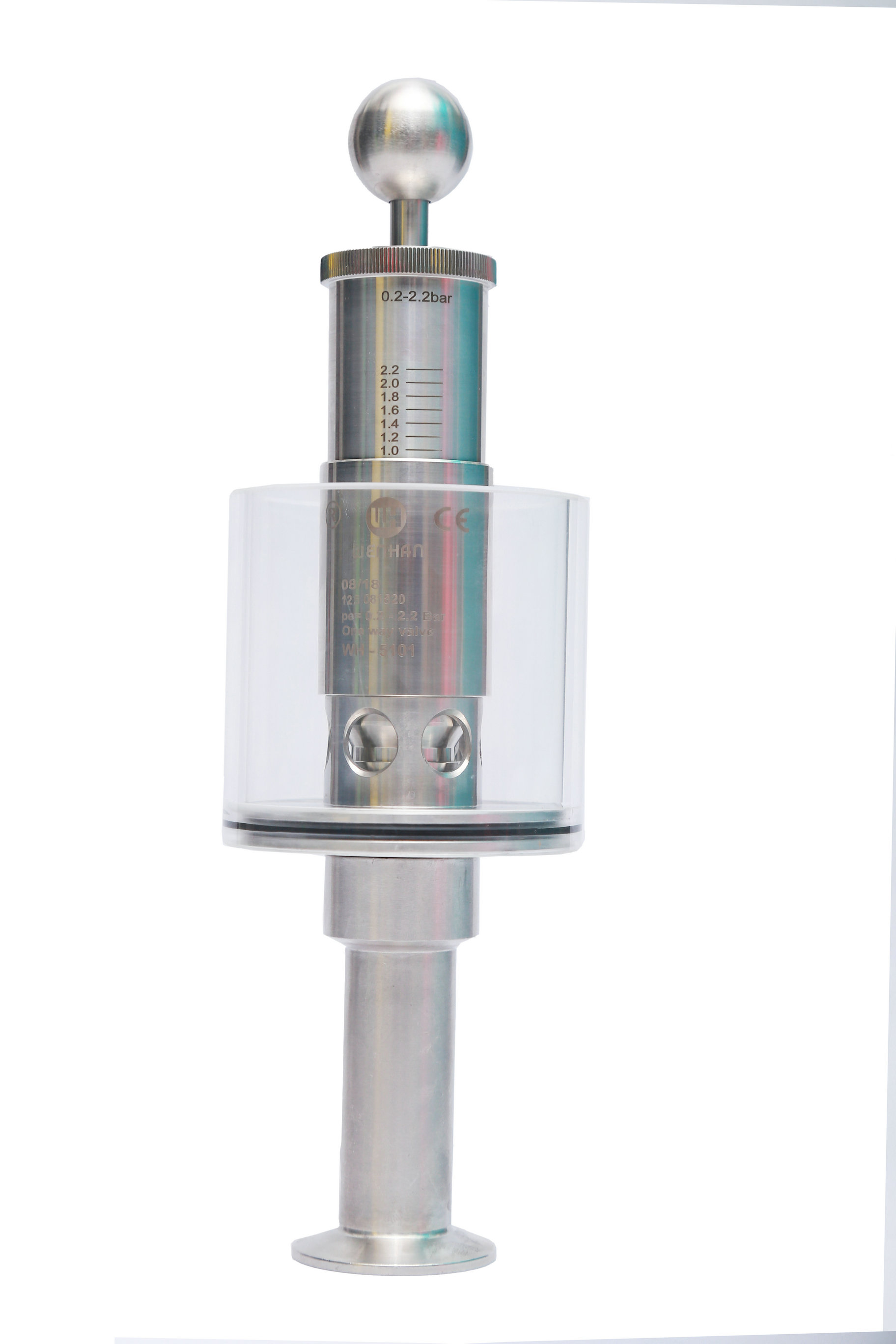 調節單向排氣閥保護容器壓力過高防爆作用,當壓力高于設定壓力(標準1BAR)時可以排氣,反之關閉,調節桿標上壓力刻度,所需壓力按刻度上調整,該閥門使用方便,刻度準確,玻璃罩加水能看到發酵效果,減少染菌。同時也可以滿足于各種生產工藝需求,適用于各種食品加工,啤酒,飲料以及制藥等各種工業領域。