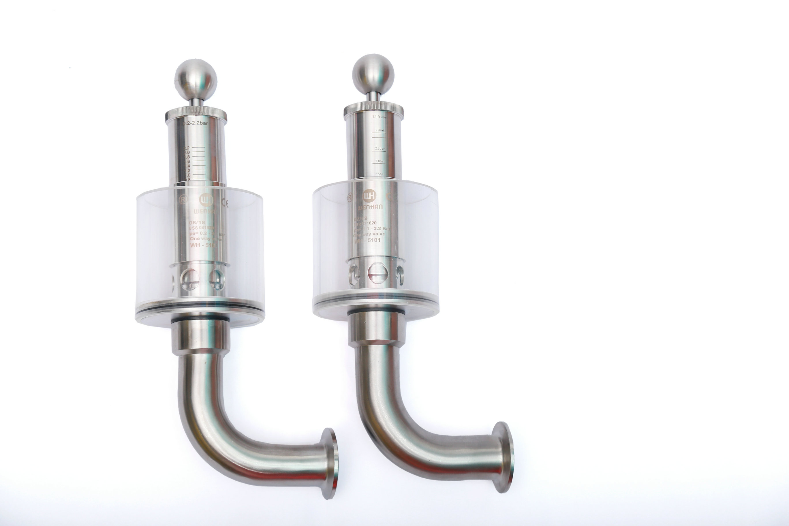 Wh-5101E 鏈接;快裝,卡箍。管徑;彎頭Φ32*1.5 . 內部設計壓力;由彈簧控制. 工作介質;氣體。手動式,旋鈕調節刻度壓力。
