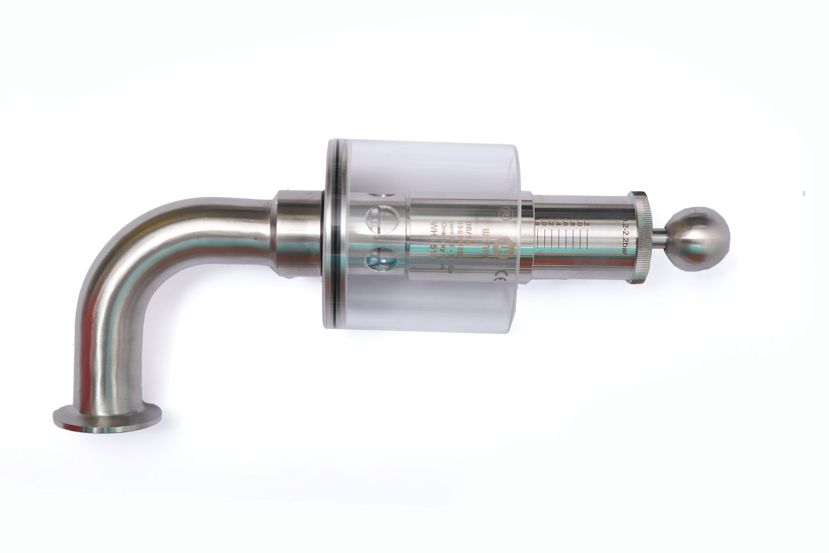 調節單向排氣閥保護容器壓力過高防爆作用,當壓力高于設定壓力(標準1BAR)時可以排氣,反之關閉,調節桿標上壓力刻度,所需壓力按刻度上調整,該閥門使用方便,刻度準確,玻璃罩加水能看到發酵效果,減少染菌。同時也可以滿足于各種生產工藝需求,適用于各種食品加工,啤酒,飲料以及制藥等各種工業領域。